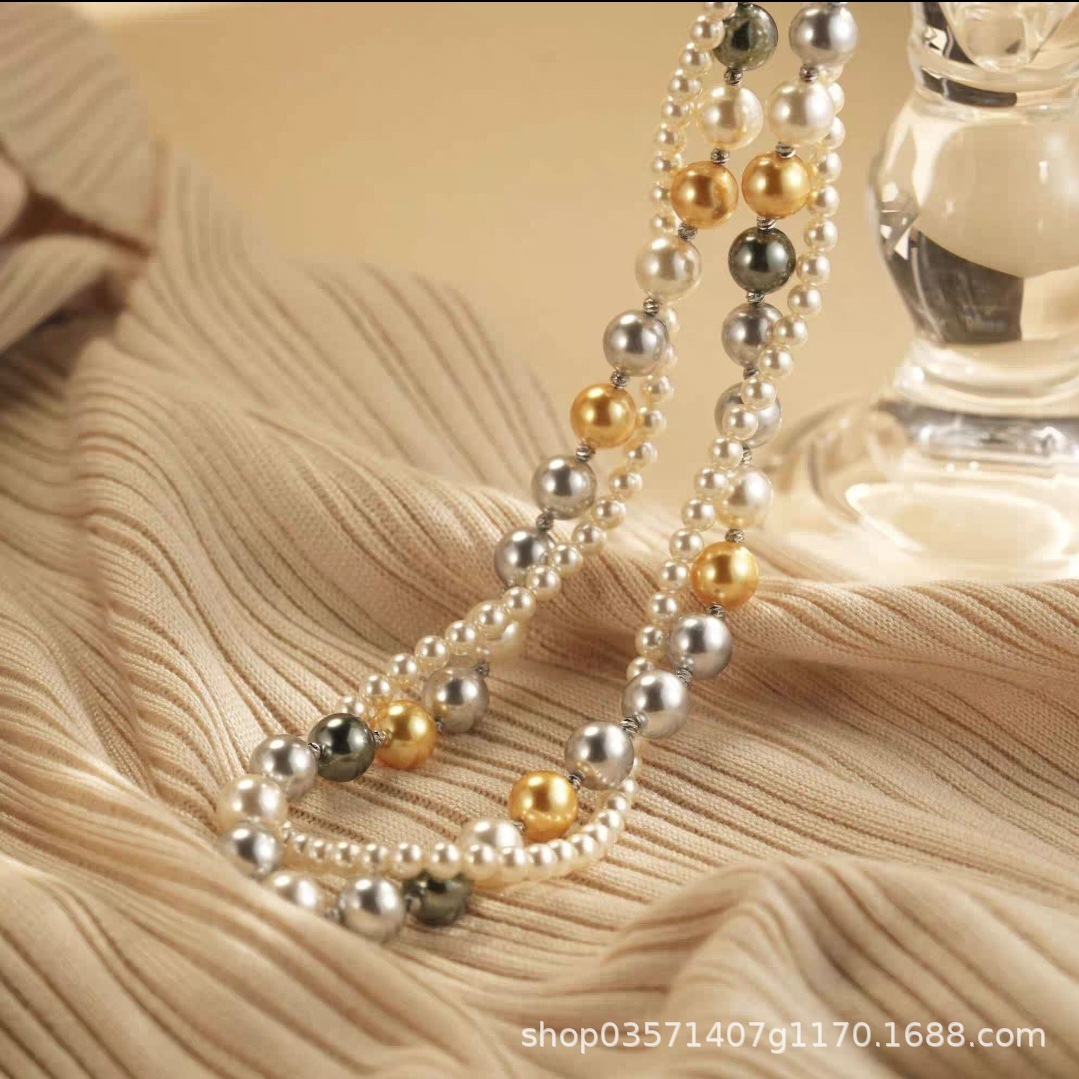 Designed Fashionable Mixed Color 4+10mm Double-Layered Versatile High-End Necklace