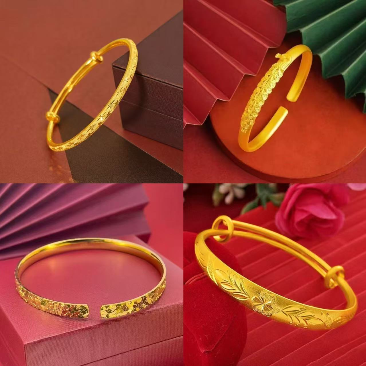 24K Gold Plated Accessible Luxury Style Women's Buckle Bracelet Wedding Women's Elegant Wholesale Cut Out Carved Bracelet Jewelry