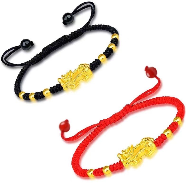 European and American cross-border new hand-woven bracelet fashion red and black rope single gold woven bracelet wholesale