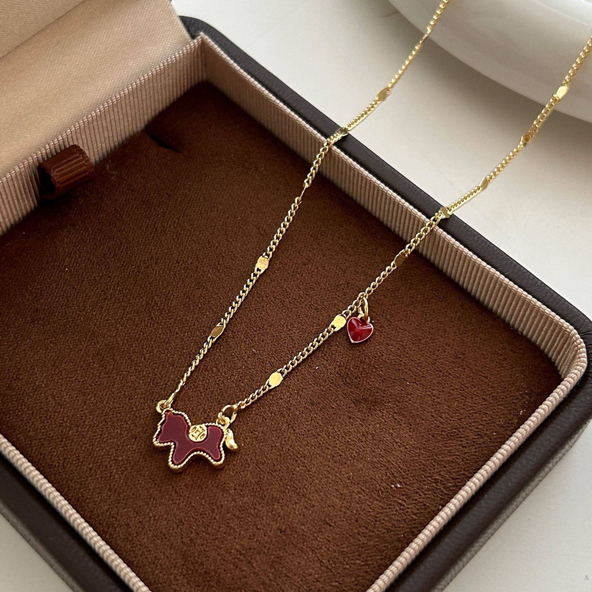 2026 New Zodiac Sign Get Rich Soon Pendant Pony Necklace Women's Red Love Clavicle Chain Light Luxury Sweater Chain