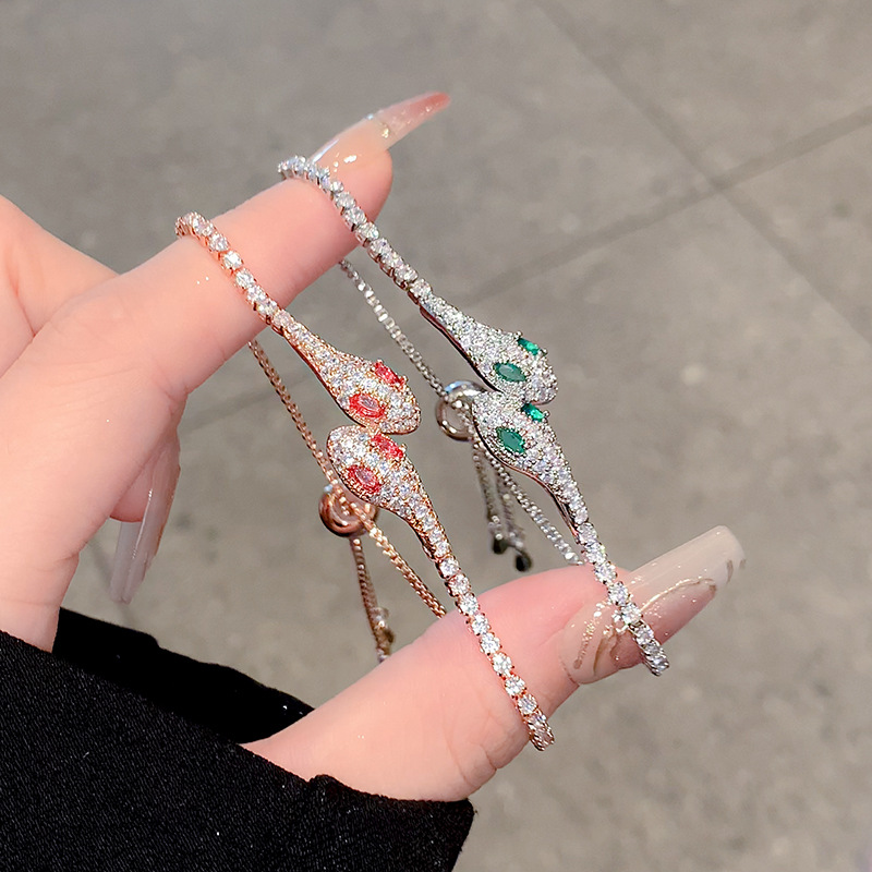 Small Snake Full Diamond Ice Blue Snake Light Luxury Bracelet Women's 2025 New Pull Bracelet Niche High-end Bracelet