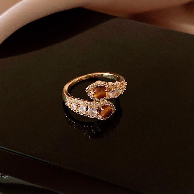 Maillard Snake-Shaped Tiger's Eye Stone Zircon Ring for Women, Unique Design, Vintage, High-End, Light Luxury, Adjustable Index Finger Ring