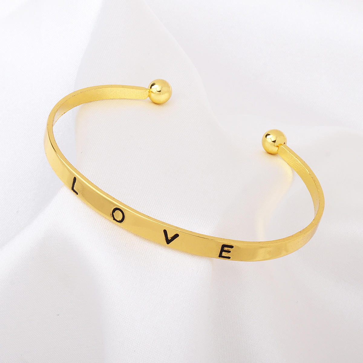 Cross-Border Aliexpress Korean Version Simple Love Open-Ended Bracelet Engraved Love Bracelet Fashion Simple Manufacturer Wholesale