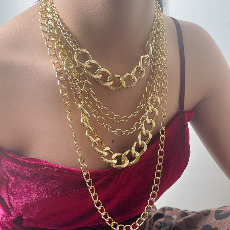 European and American Cross-border Jewelry Simple Punk Hip-hop Mix and Match Necklace Women's Exaggerated Multi-layer Tassel Coarse Chain Necklace