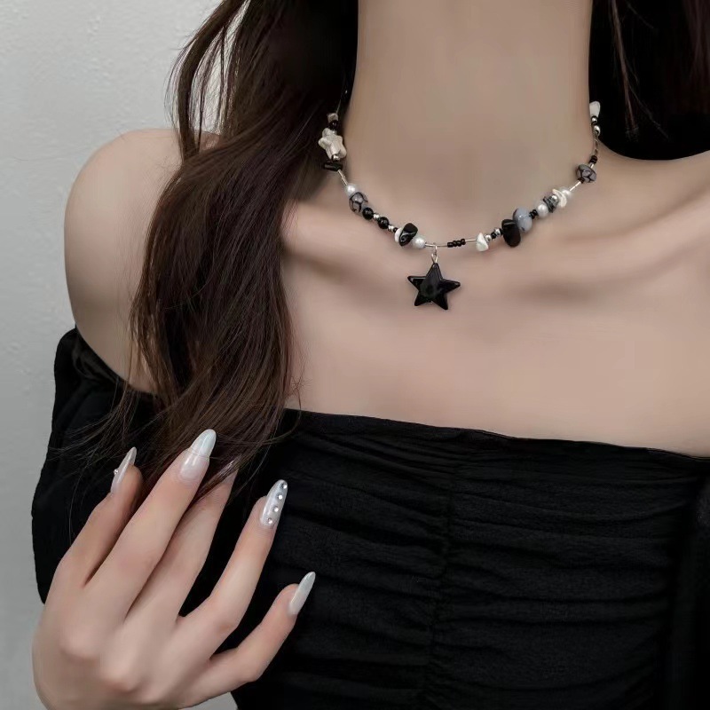 Black Star Beaded Necklace for Women Y2K Niche Sweet and Cool Sexy Clavicle Chain Accessible Luxury High-End Design Necklace