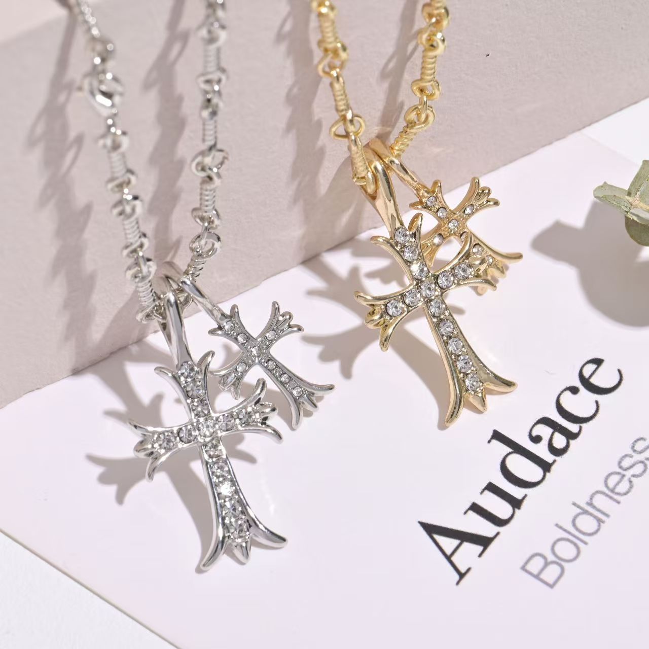 New European and American Necklace Classic Retro Fashion Necklace Wind Leaves Cross Rose Necklace Factory Wholesale