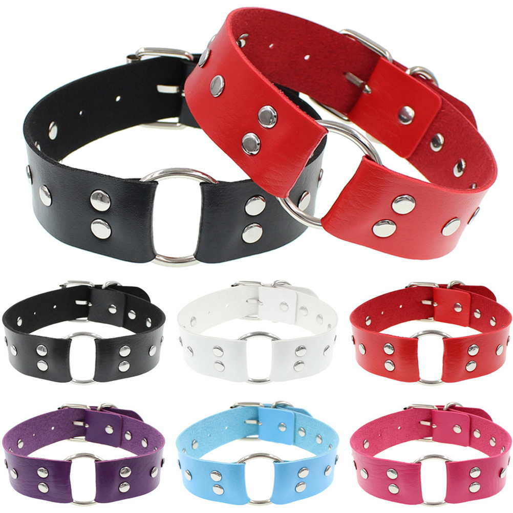 Factory direct European and American fashion Harajuku punk style enlarged wide PU leather ring rivet collar clavicle chain necklace