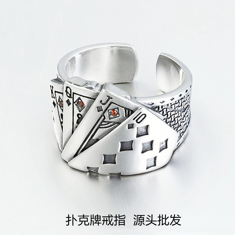 Flush playing card ring men and women retro domineering Diamond Square opening hip-hop ring jewelry wholesale
