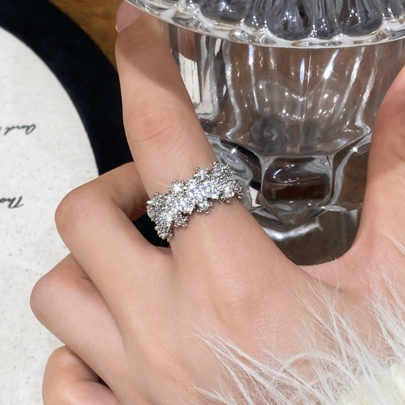 Minimalist Luxury Exquisite Full Diamond Super Shiny Zircon Open Ring with a Unique Design, Niche High-End Temperament Versatile Ring