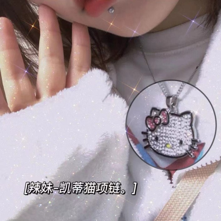Hello Kitty Full Diamond Hello Kitty Necklace Cute Trendy Millennium Sexy Y2K Pendant Student Clavicle Chain for Women