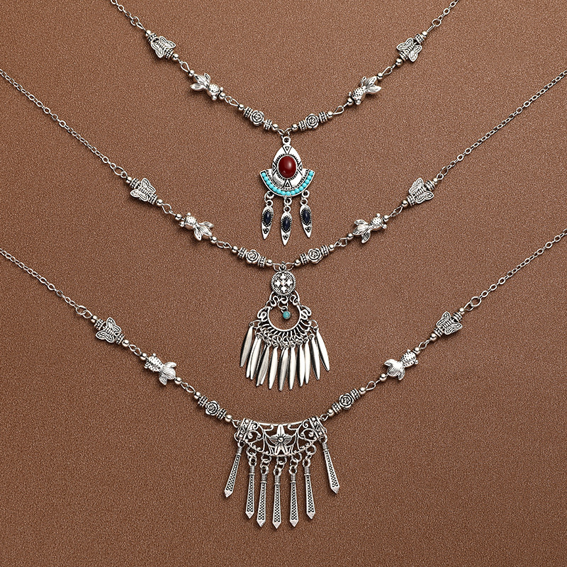 Xizang ethnic style tassel forehead chain women's retro exotic style forehead ornaments eyebrow pendant antique photo headwear necklace