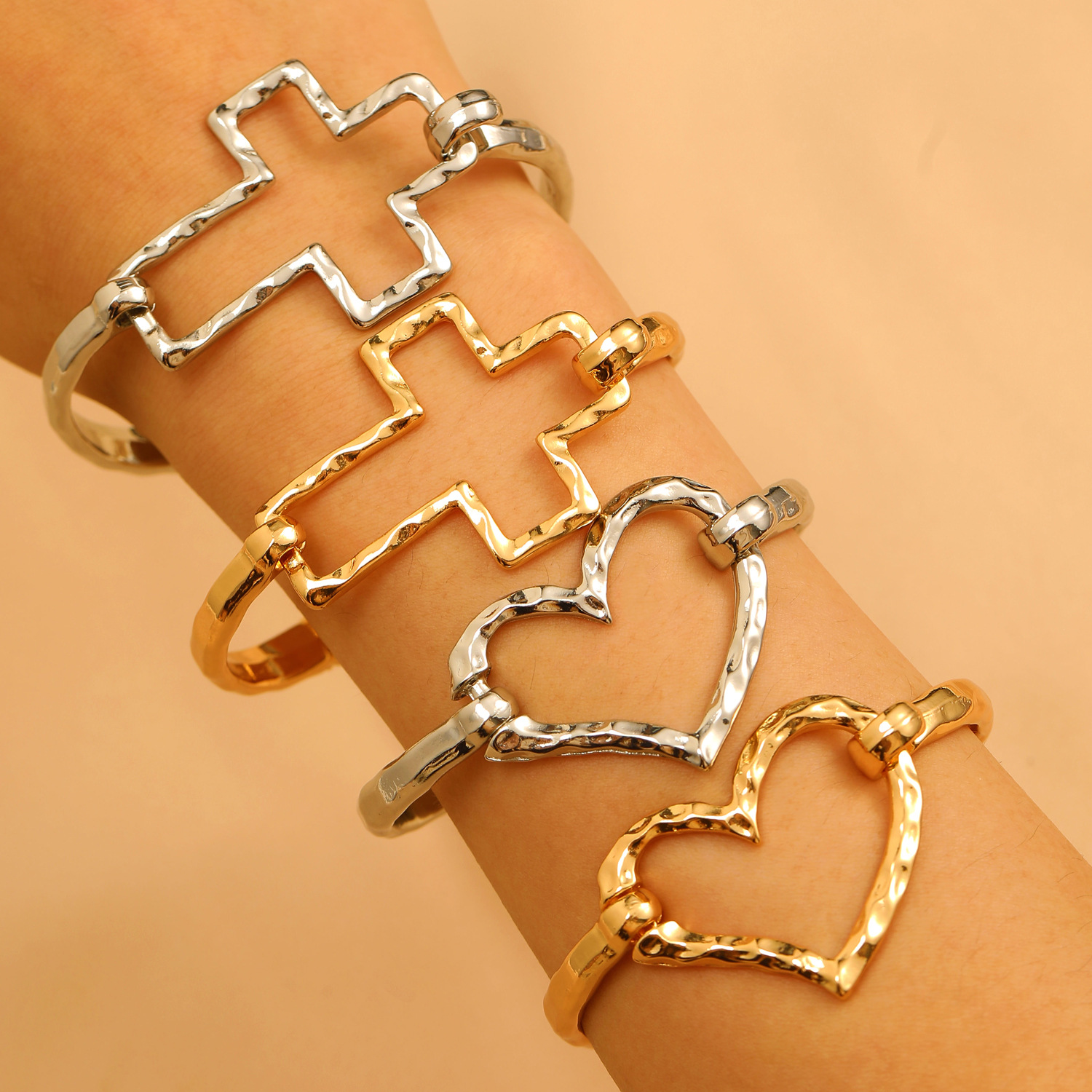 Cross-Border Exaggerated Alloy Versatile Fashion Design Creative Cross Heart Electroplated Simple Trendy Temperament Bracelet
