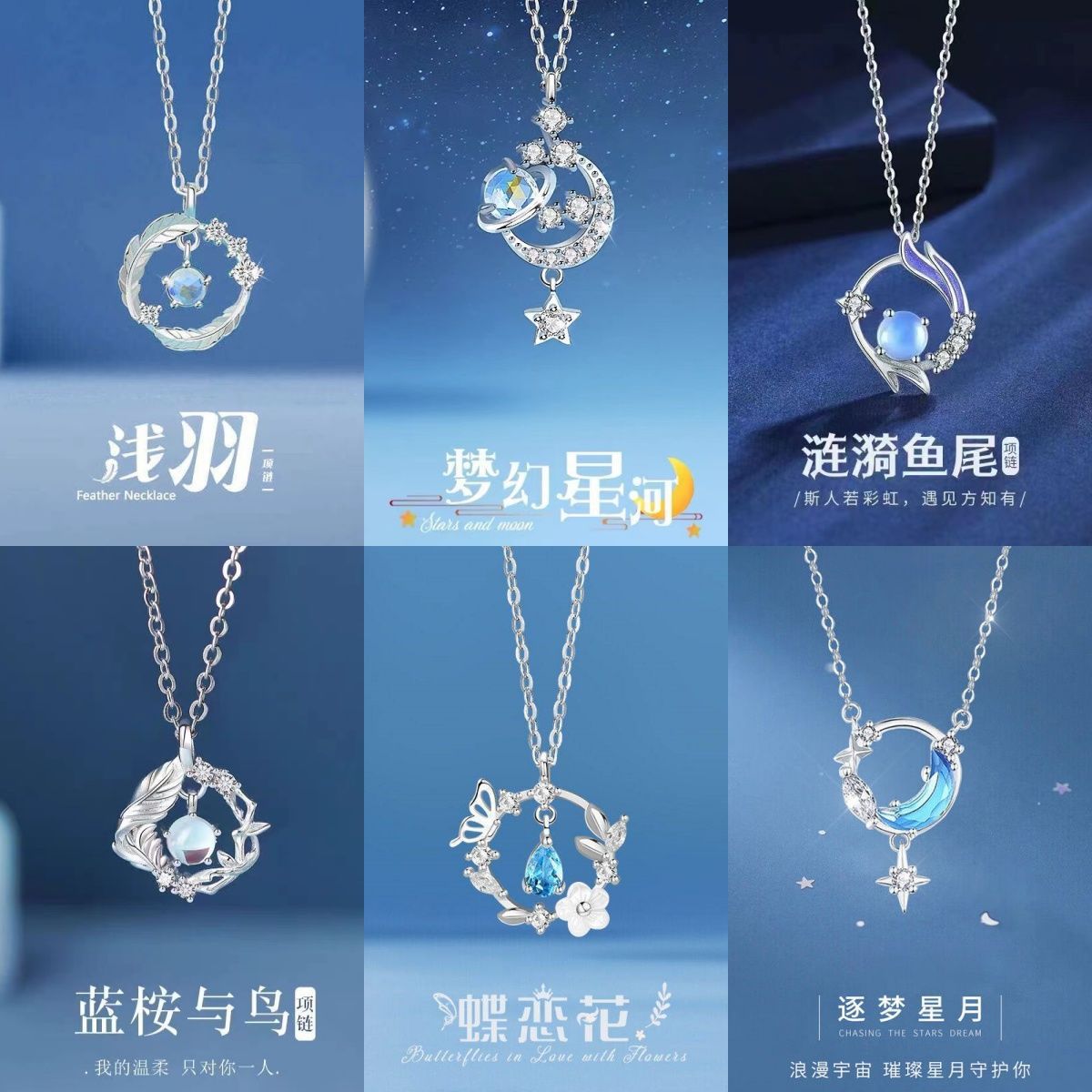 [Six-Person Bestie Model] Fantasy Necklace Original Star and Moon Set Ins Style Preppy Gentle Fairy Sister Gift