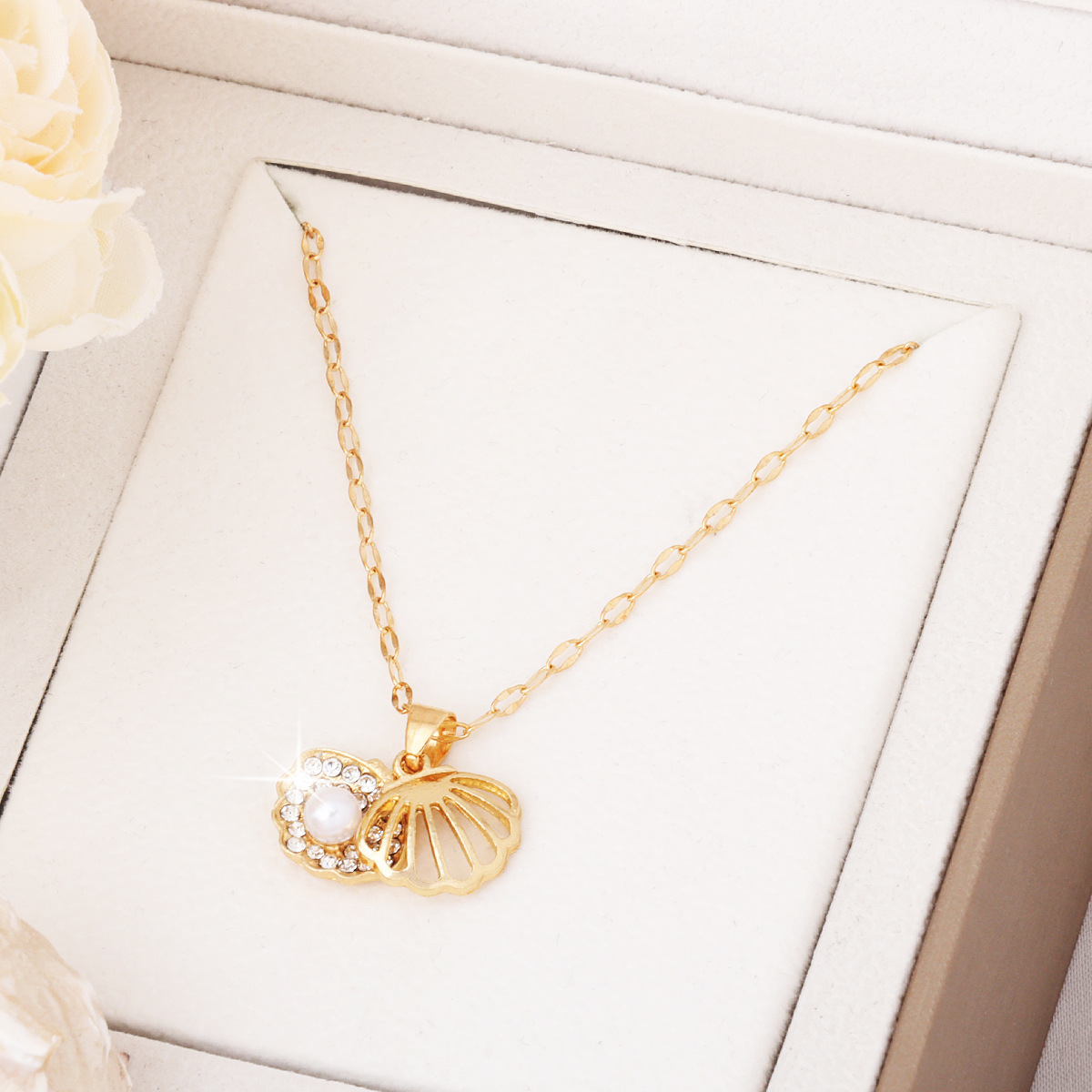European and American Cross-Border New Style Zircon Inlaid Hollow Shell Pendant Necklace Fashion Temperament Chain Clavicle Chain Jewelry Wholesale