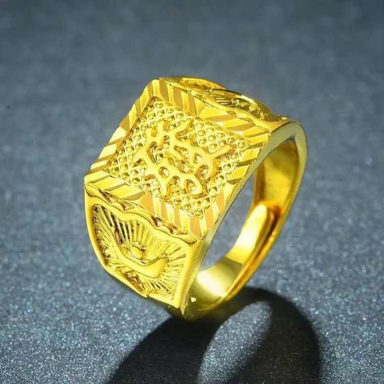 High Imitation Vietnam Sand Gold Men's Ring Aggressive Fortune Loose Mouth Adjustable Size Gold Engraving Long Fade