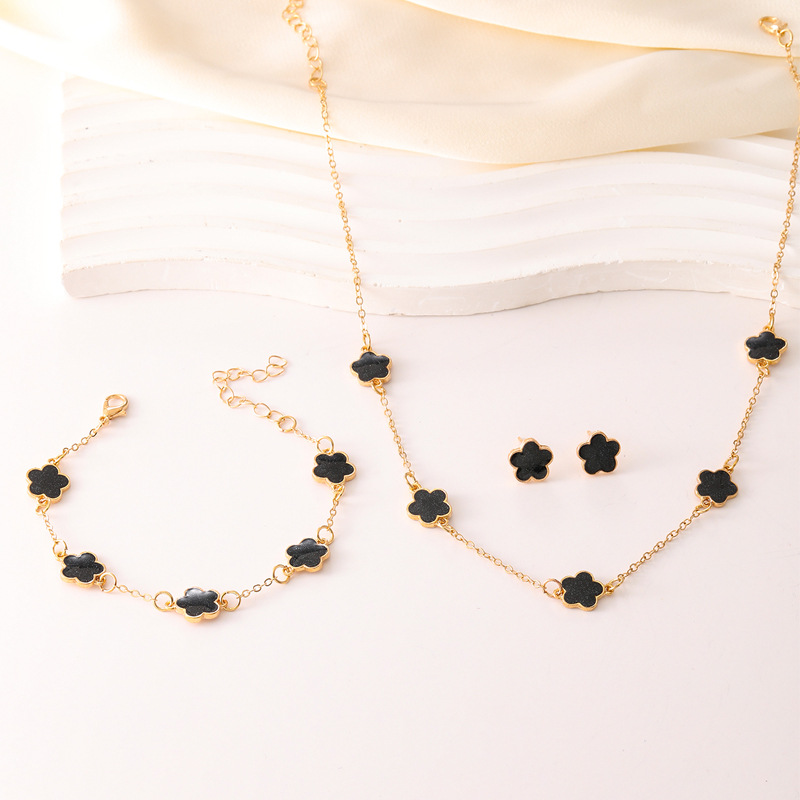 Cross-Border Hot-Selling Lucky Flower Jewelry Set for Women Xiyin Temu New Five-Leaf Clover Necklace Bracelet Earrings 3-Piece Set