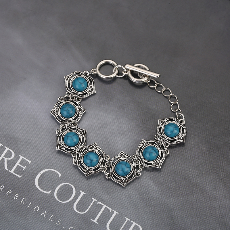 European and American Cross-Border Jewelry Turquoise Ethnic Style Ebay Retro Three-Piece Necklace Earrings Bracelet Wholesale Retro Style