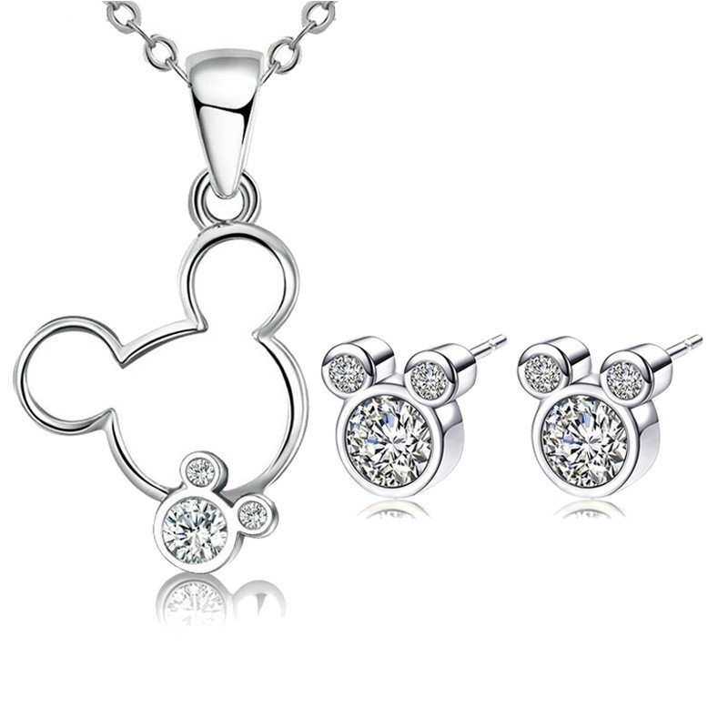 European charm necklace with stud earrings suit DIY Diamond Mickey pendant with stud earrings necklace jewelry wholesale