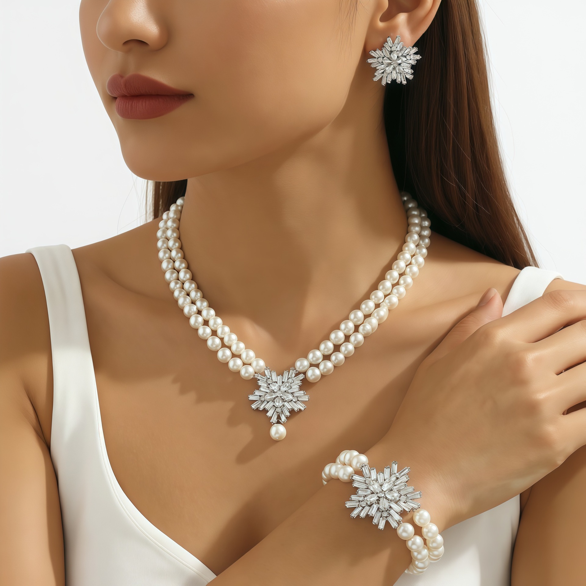 Jewelry Women's Pearl Jewelry Christmas Suit Dress Party Necklace Earrings Bracelet Three-Piece European and American Style