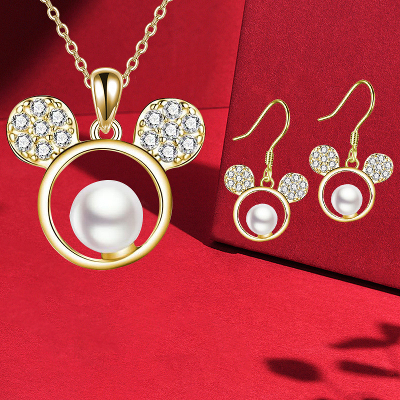 New Shiny Exquisite Cartoon Cute Creative Cartoon Mouse Fashion All-match Pendant Necklace Earrings Fresh Gift