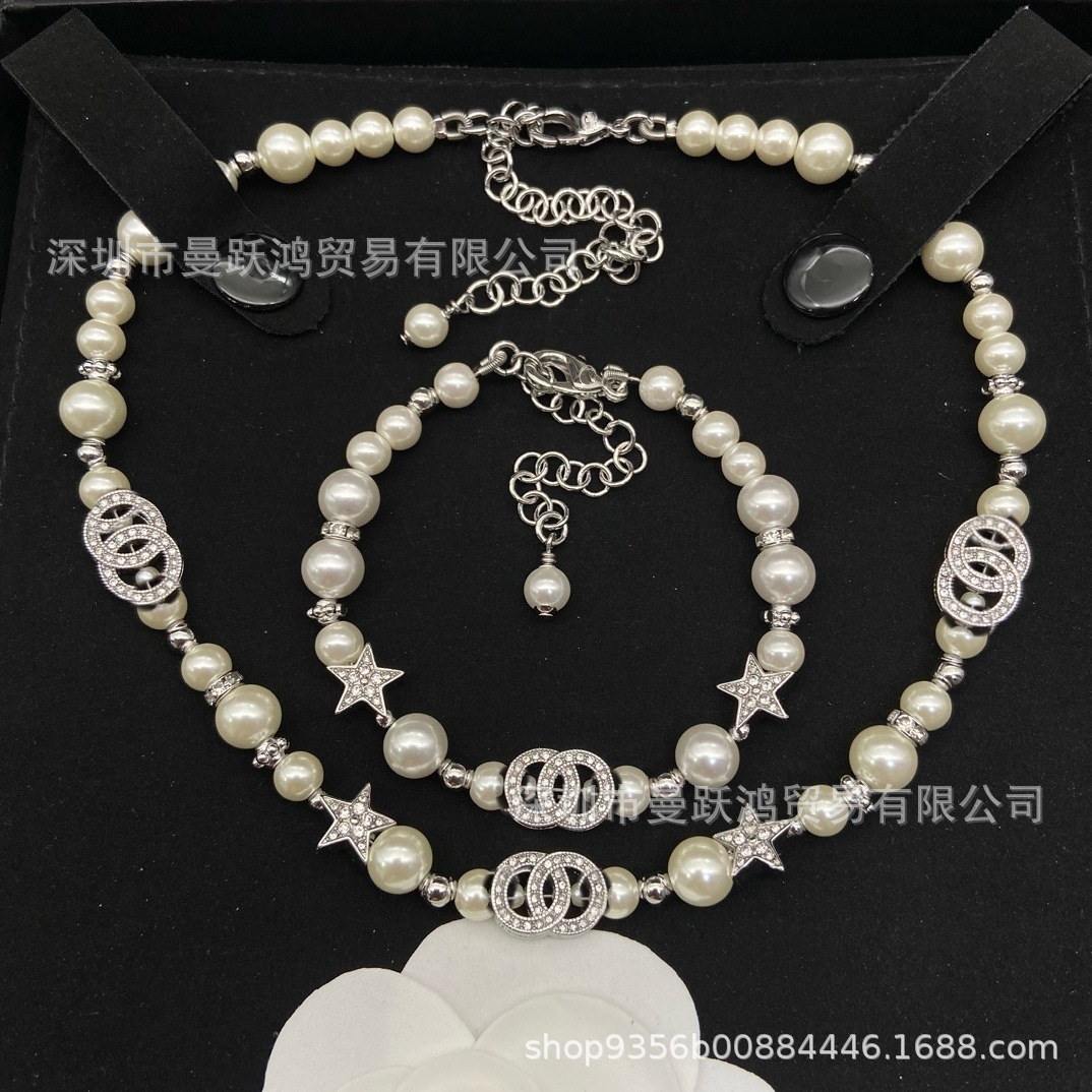 High-Quality Chanel-Style Star Pearl Necklace with Label for Women, Vintage Socialite Bracelet Wholesale