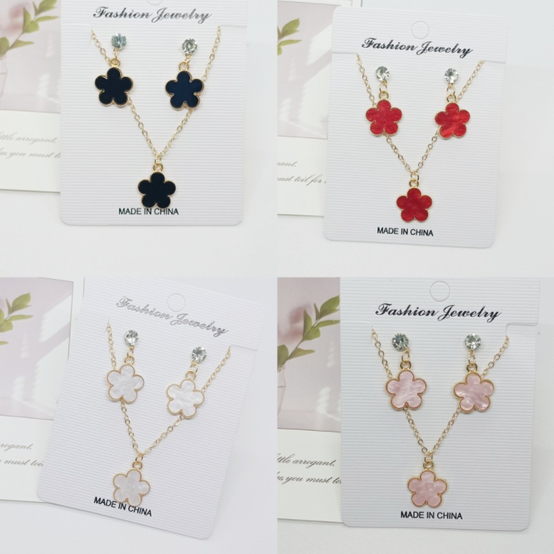 Popular Lucky Four-Leaf Clover Five-Flower Earrings Necklace Multi-Piece Set with Simple Temperament and Personalized High-End Clavicle Chain Set