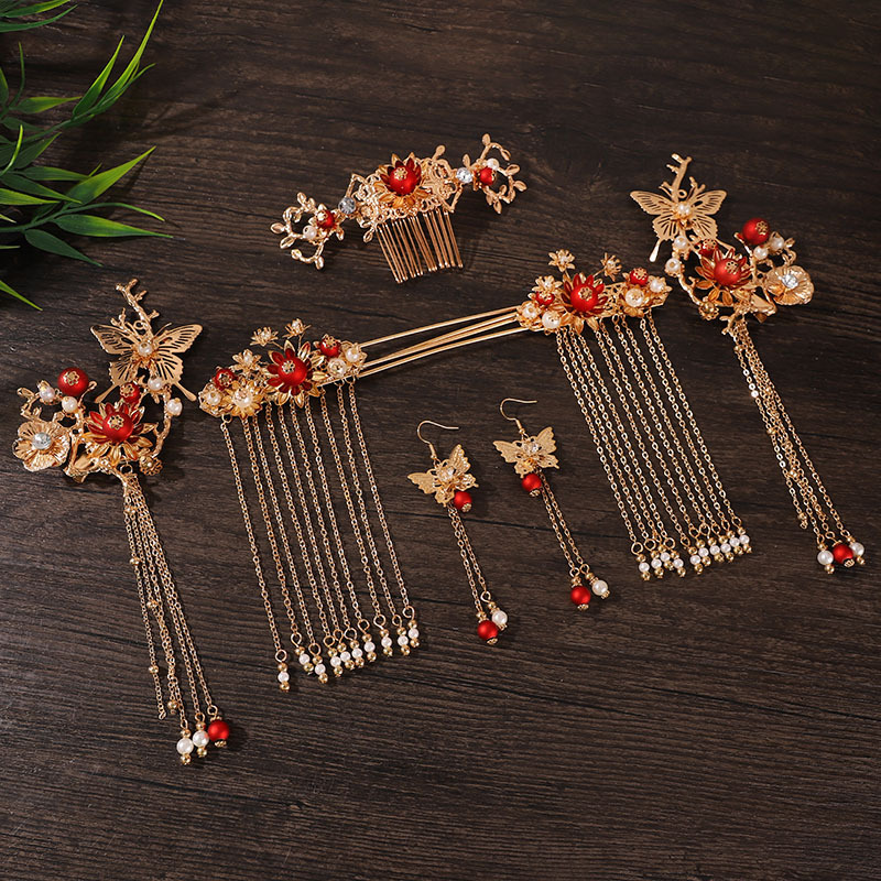 Bride Xiuhe Suit, Phoenix Crown Headdress, Chinese Han Dynasty Bridal Headdress Set, Tassel Dragon and Phoenix Coat, Ancient Style Hair Accessories