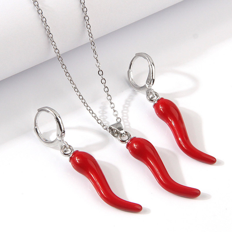 1 Set Fashion Concise Red Small Pepper Personality Temperament Ladies Necklace Earrings Ladies Jewelry Set