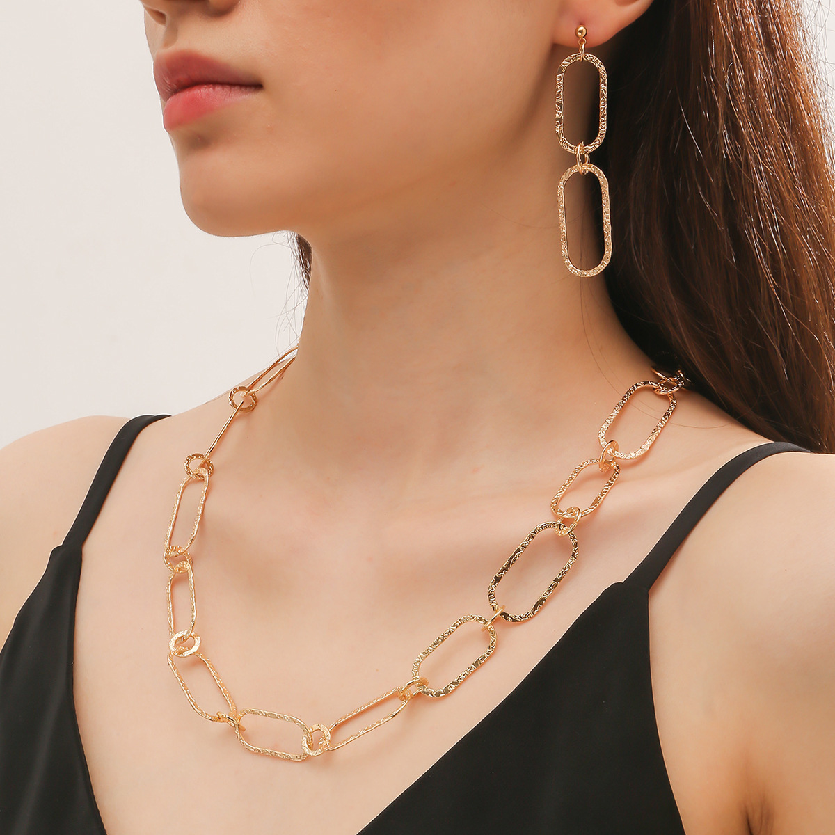 Amazon cross-border exaggerated alloy large chain necklace earrings punk geometric pendant suit jewelry ladies