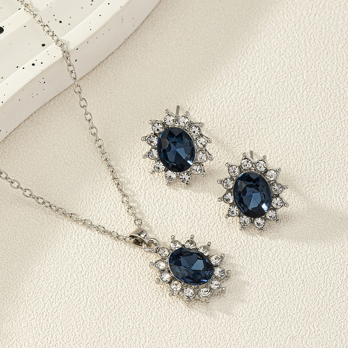 Long Rui European and American AliExpress hot oval gem claw chain set crystal necklace earrings ring wholesale three piece set