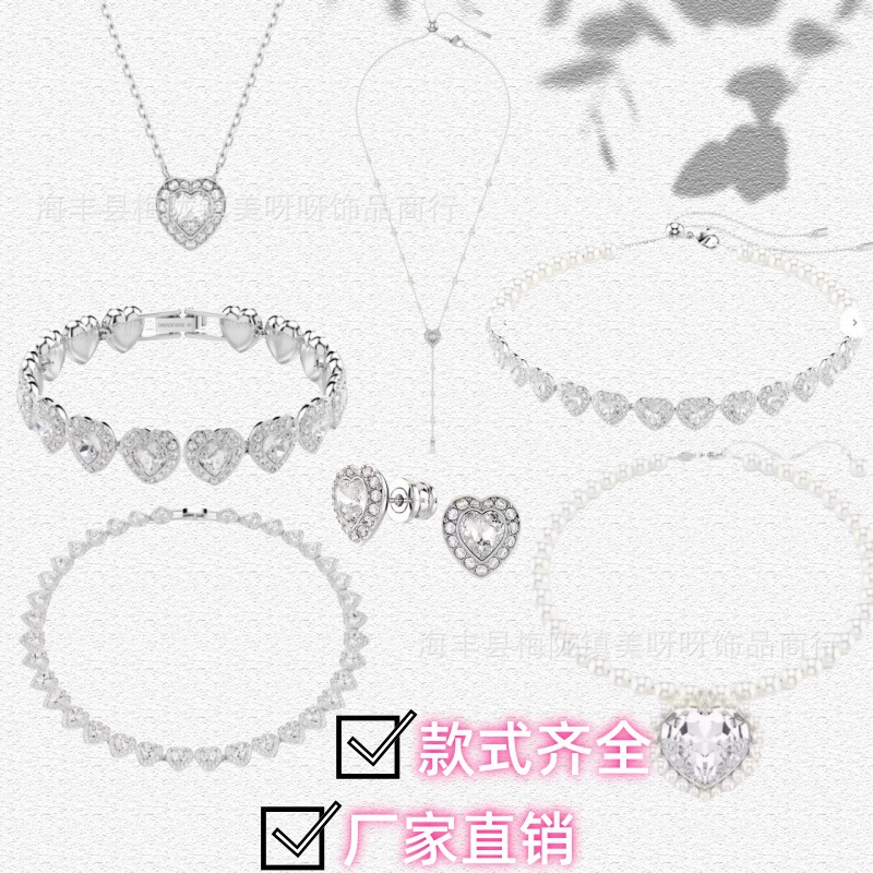 Shijia's New Love Roman Necklace, Light Luxury Full Diamond Heart-Shaped Bracelet, Cross-Border Fashion Love Earrings Jewelry Set