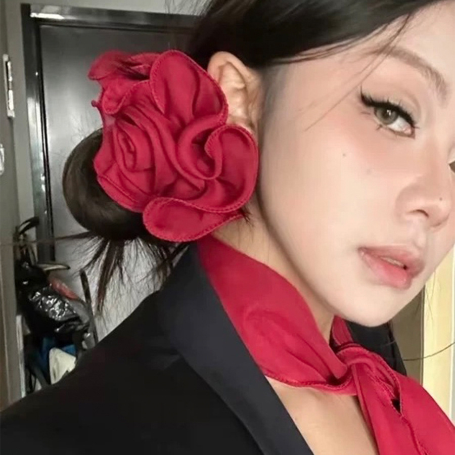 Korean-Style Fabric Silk Scarf with Floral Side Hairpin Set, Fresh and Sweet Duckbill Clip, Fashionable Versatile Accessory