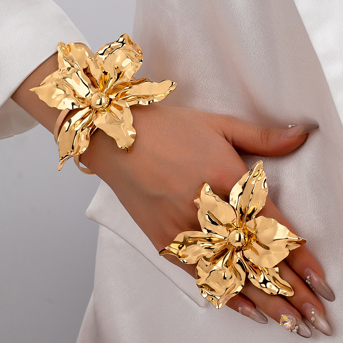 Cross-border Hot Niche Design Exaggerated Big Flower Ring Bracelet Two-piece Set Women's Temperament High-end Sense