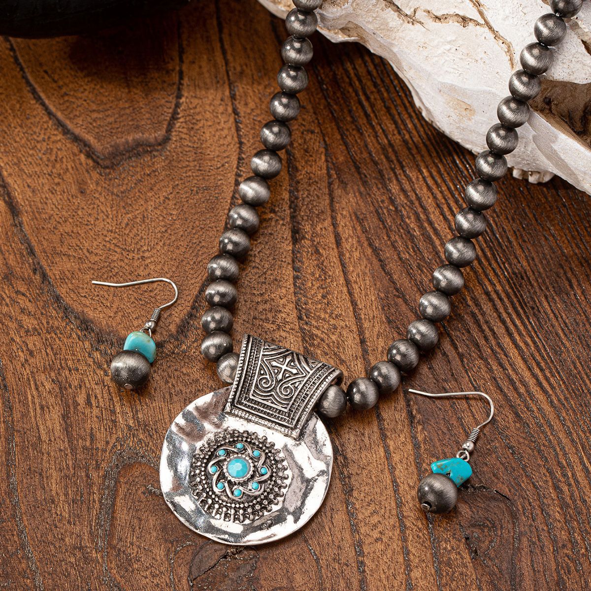 Qingdao Daiwei Jewelry Wholesale Cross-Border E-Commerce Supply Retro Western Style Turquoise Decorative Earrings Necklace Set