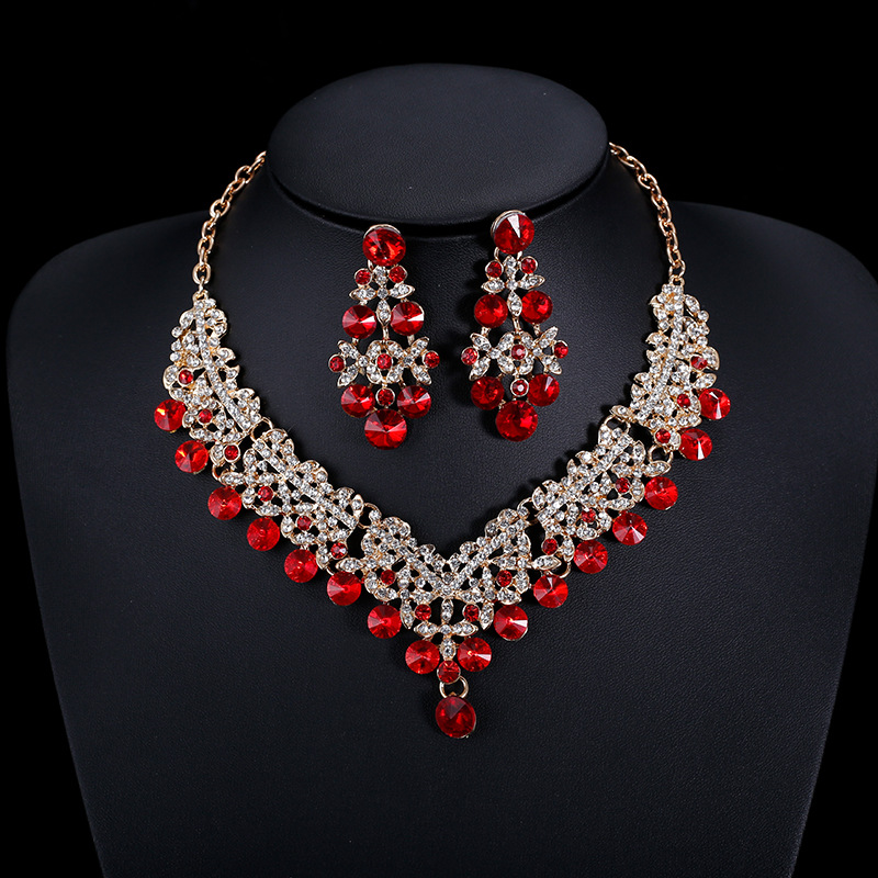 Ethnic Style Retro Bridal Jewelry Gemstone Necklace Alloy Rhinestone Earrings Set Jewelry Exotic and Foreign Style