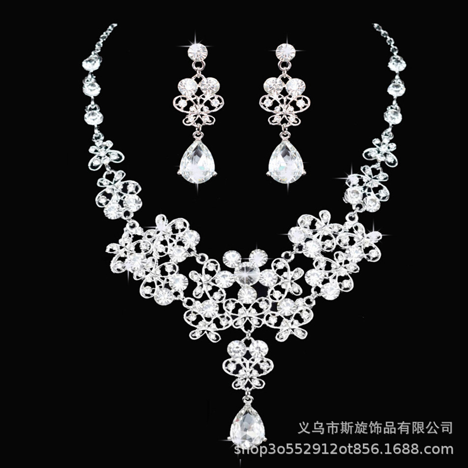Amazon Wedding Bridal Necklace and Earrings Jewelry Set with Diamond-Encrusted Alloy Accessories Manufacturer In-Stock Wholesale Light Luxury Style