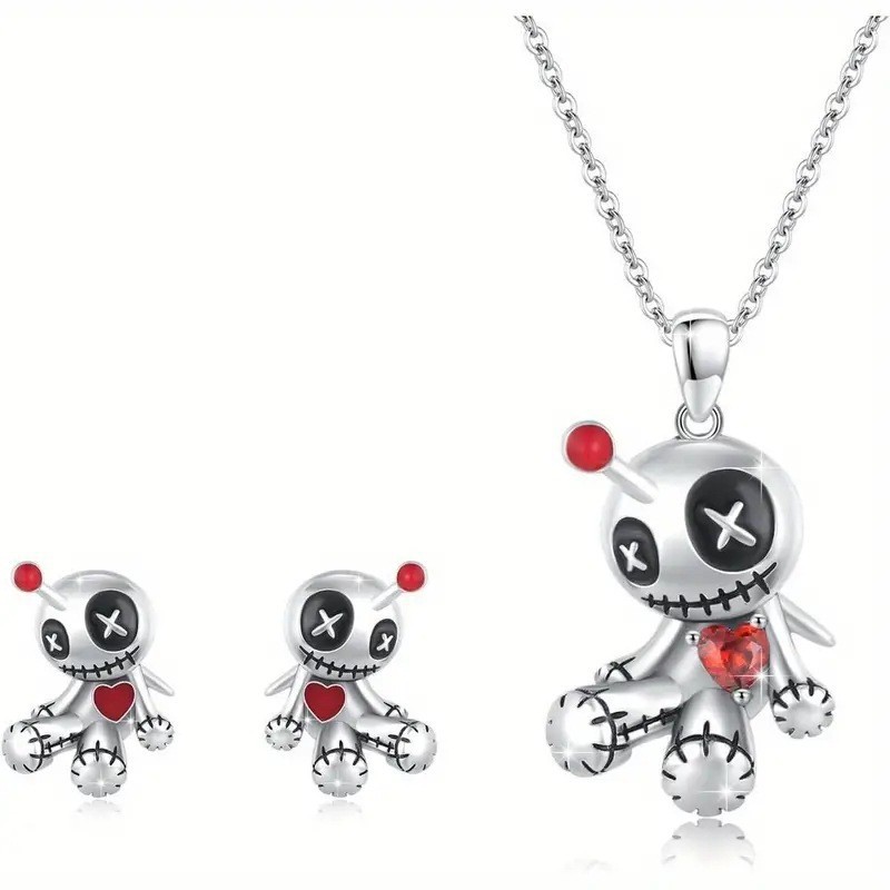 Huitan European and American Creative Doll Jewelry Set, Painted Oil Heart, Cute Necklace for Women, Stereo Robot Design