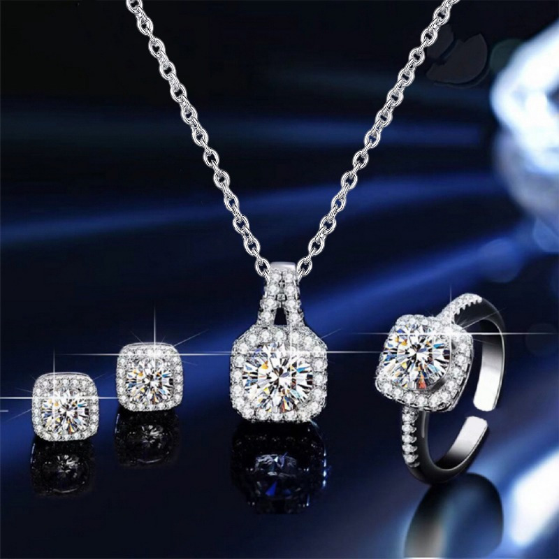 European and American personality water drops rhinestone necklace earrings ring set bridal jewelry wholesale three-piece set