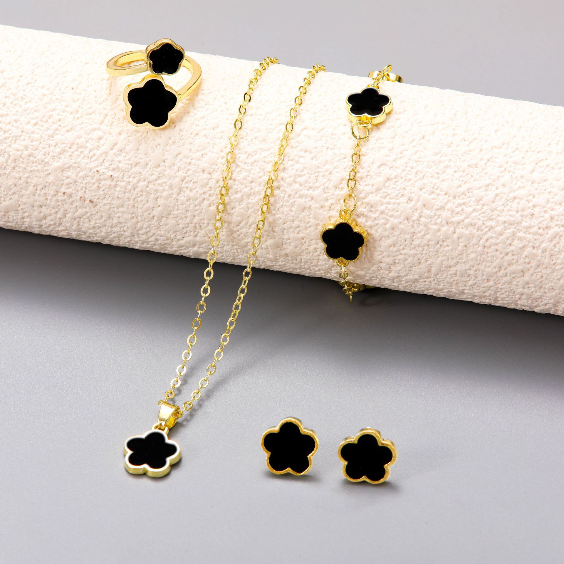 Cross-Border Small Fresh Flower Jewelry Set Fashion Lucky Flower Necklace Simple Five-Leaf Clover Bracelet Earrings Ring for Women