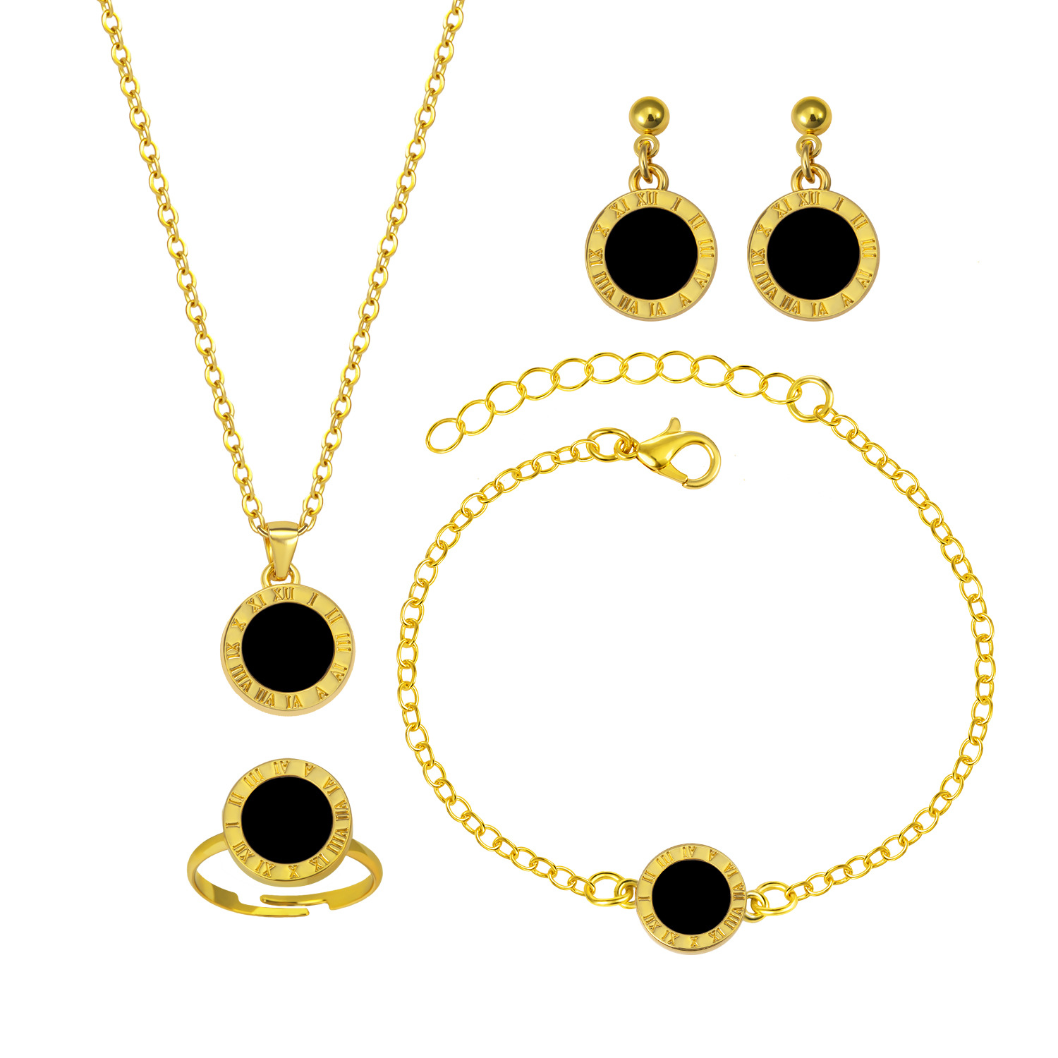 Roman Numeral Jewelry Set Summer New Bracelet Geometric Necklace Ring Round Pendant Earrings Jewelry Set