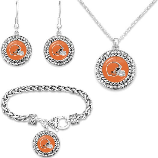 European and American Amazon's New Nfl Football Diamond Pendant Bracelet Necklace Earrings Set Factory Direct Sales