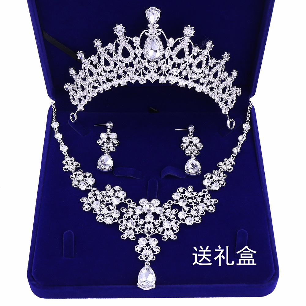 X001 Bride's Headpiece Jewelry Crown Three-Piece Set Wedding Necklace Earrings Set European and American New Style Wedding