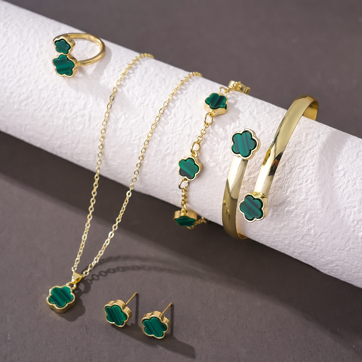 European and American cross-border temu explosions bright lucky flower jewelry suit acrylic bracelet five-leaf clover jewelry ladies