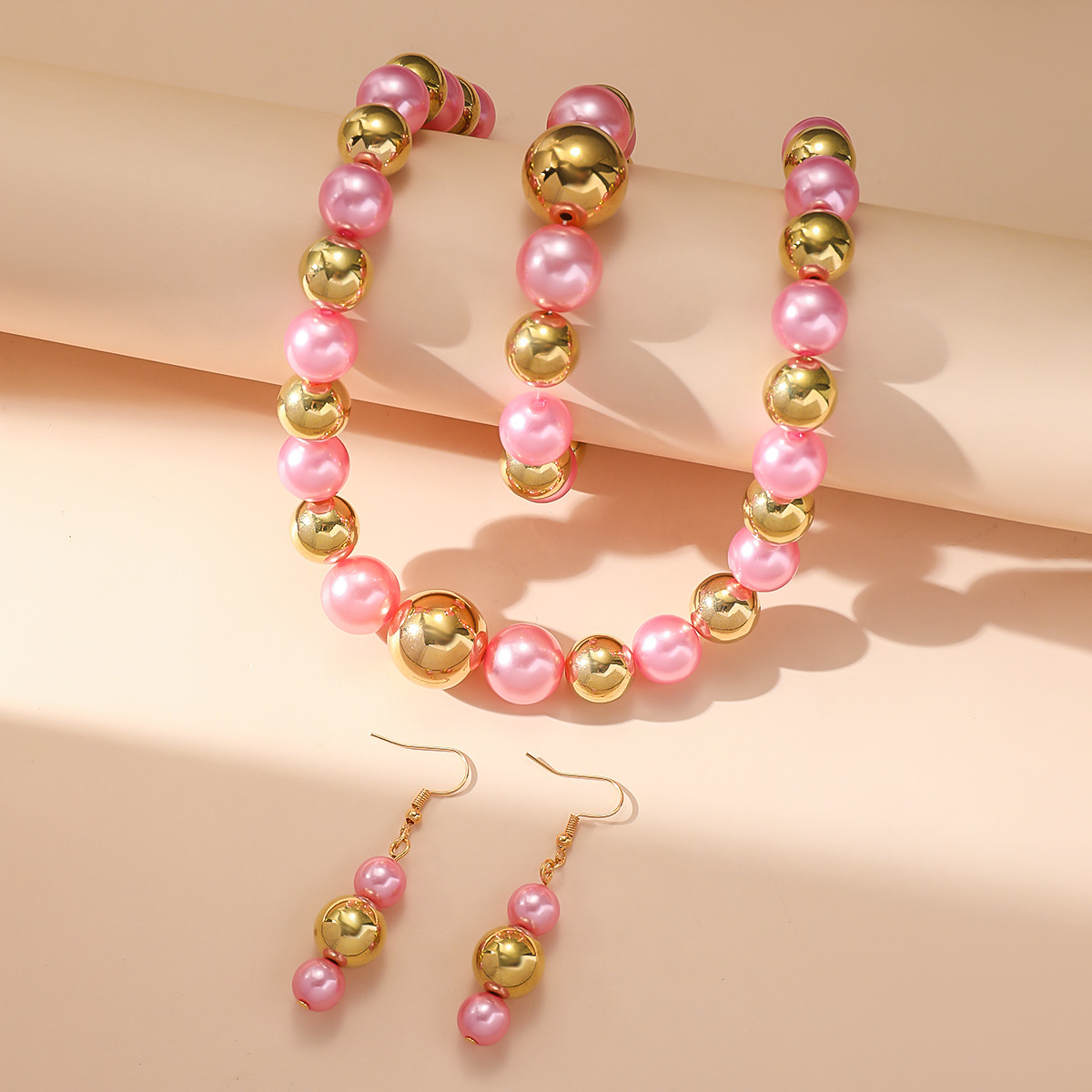 Fashion imitation pearl diamond necklace earrings pendant 2-piece set cross-border wish bride jewelry manufacturers wholesale