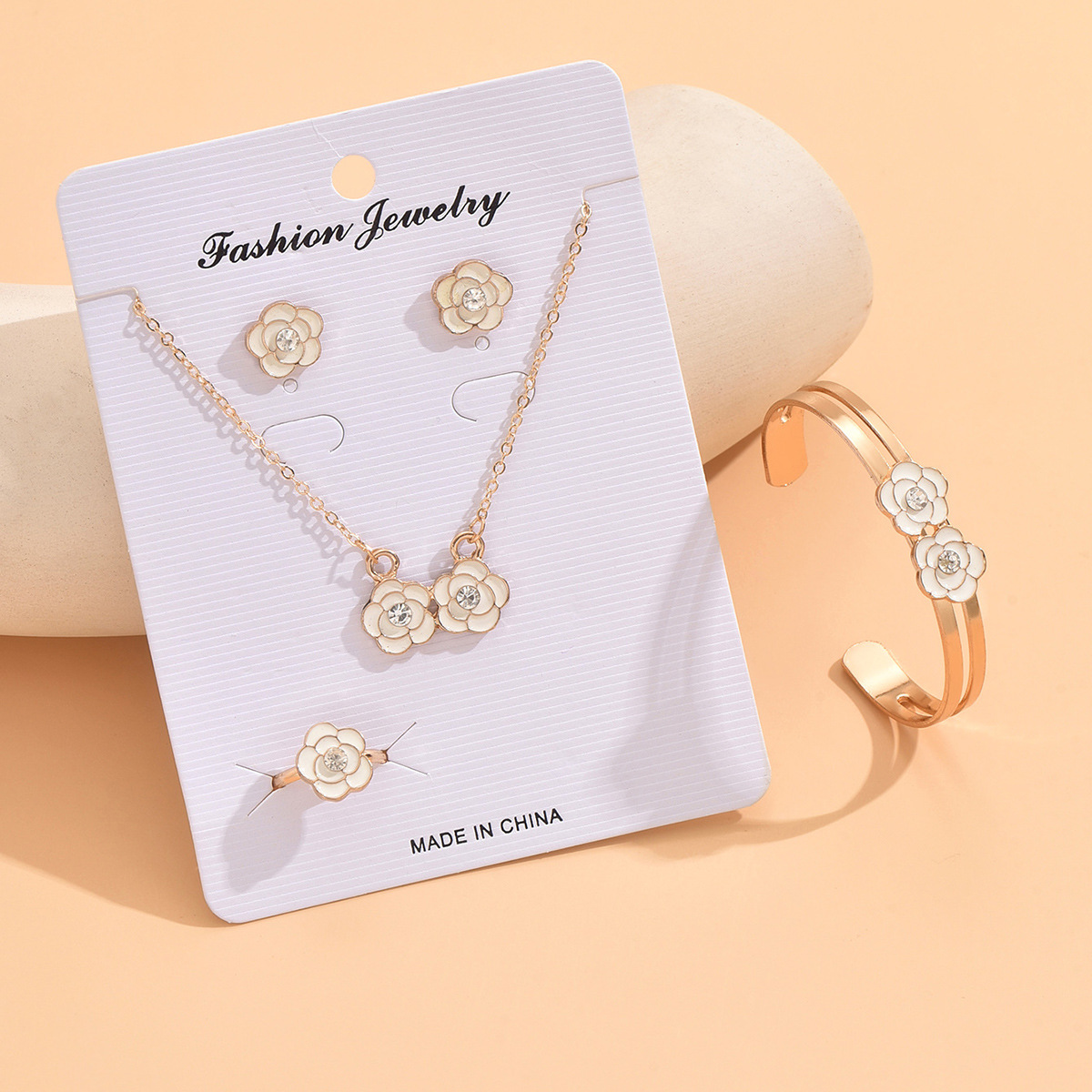 Cross-border European and American Environmental Protection Children's Jewelry Cute Fashion Diamond Flower Earrings Necklace Ring Bracelet suit