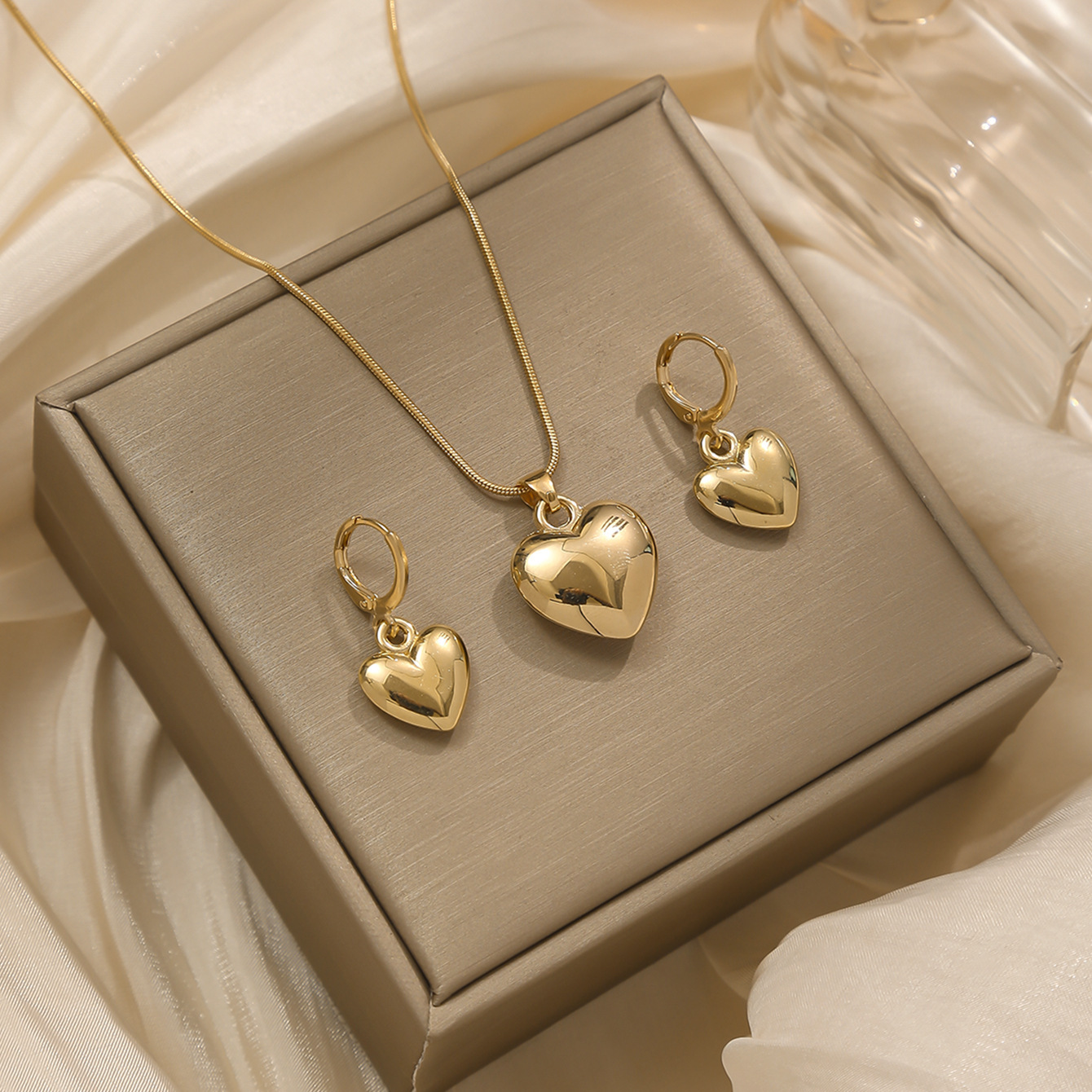 European and American Cross-Border Hot-Selling Heart-Shaped Pendant Personalized Fashion Earrings Women's Jewelry Set with Necklace