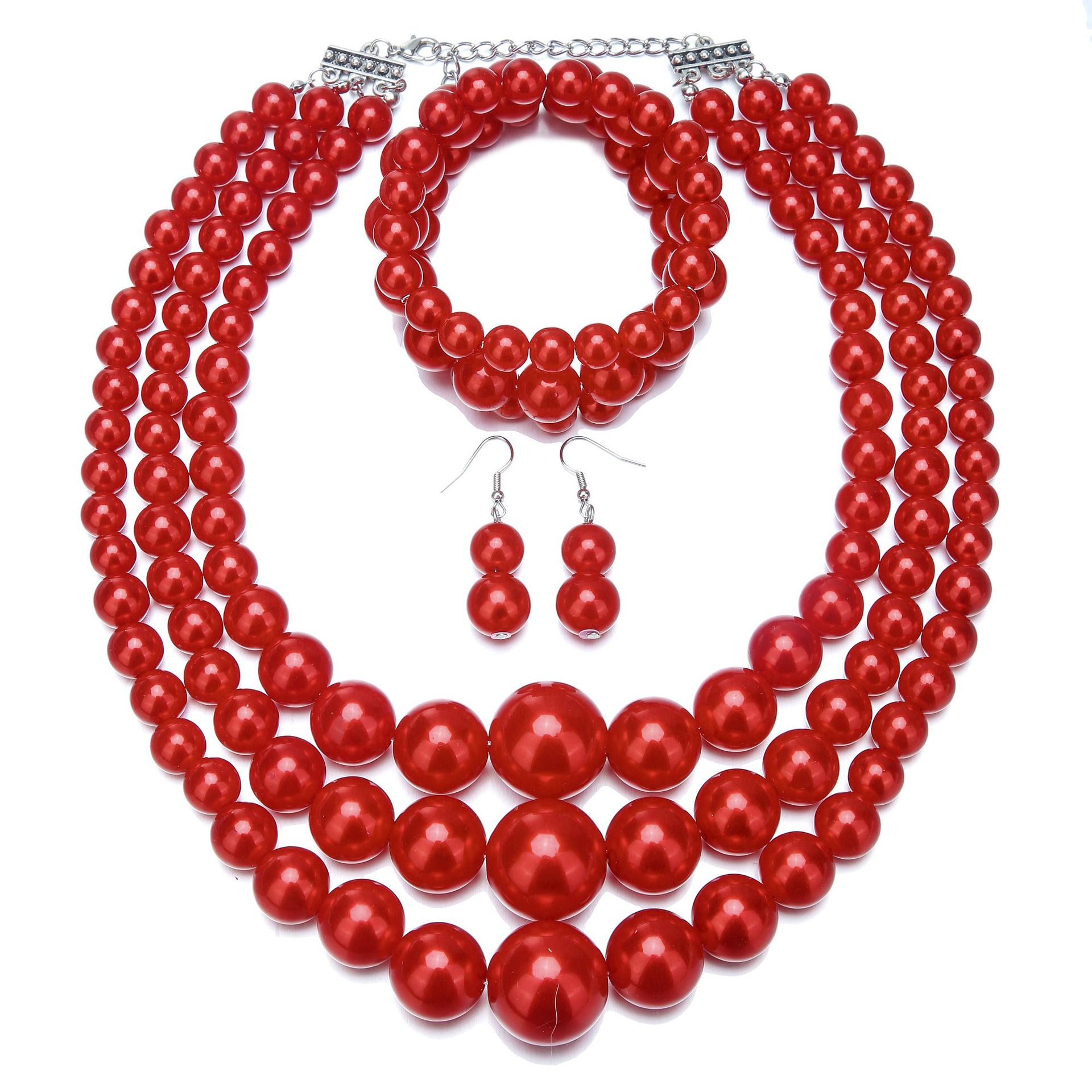 Cross-Border 4Pcs Imitation Pearl Thick Necklace Bohemian Style Jewelry Set Bride Bridesmaid Wedding Jewelry