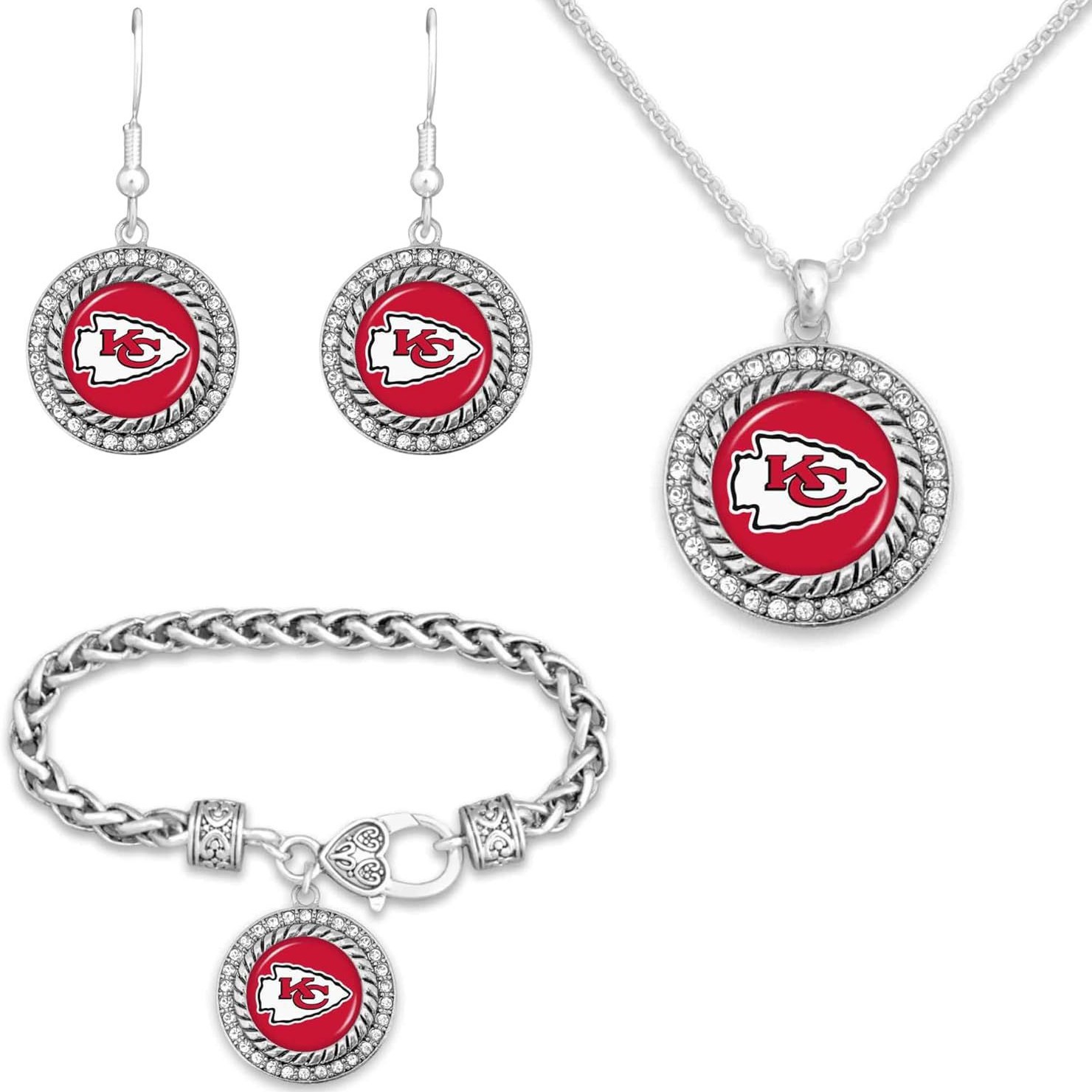 Nfl Football with Diamonds 32 Team Series Chiefs 49Ers Steelers and Other Bracelets Earrings Necklace Set