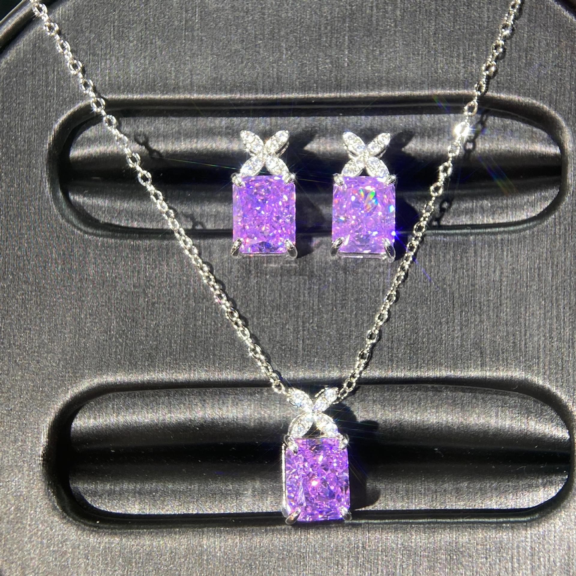 Light Luxury Niche Design Inlaid Purple High Carbon Diamond Bird's Nest Cut Earrings Earrings Necklace suit Factory Direct Sale