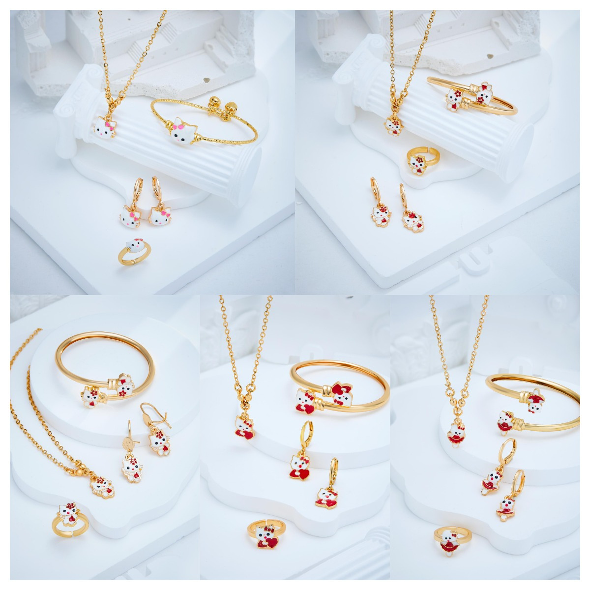 Cross-Border Hello Kitty Series Cartoon Cute Alloy Enamel Jewelry Necklace Earrings Set Manufacturer Wholesale